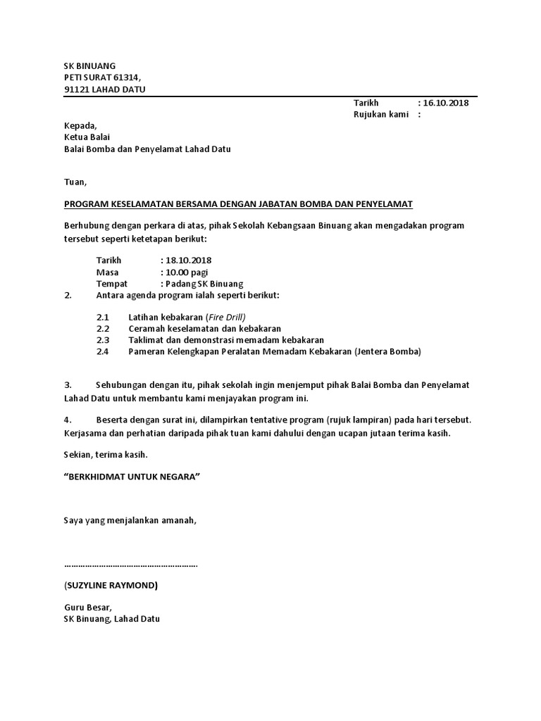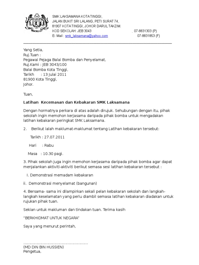 Surat Rasmi Permohonan Latihan Kebakaran Resepi Book C Otosection
